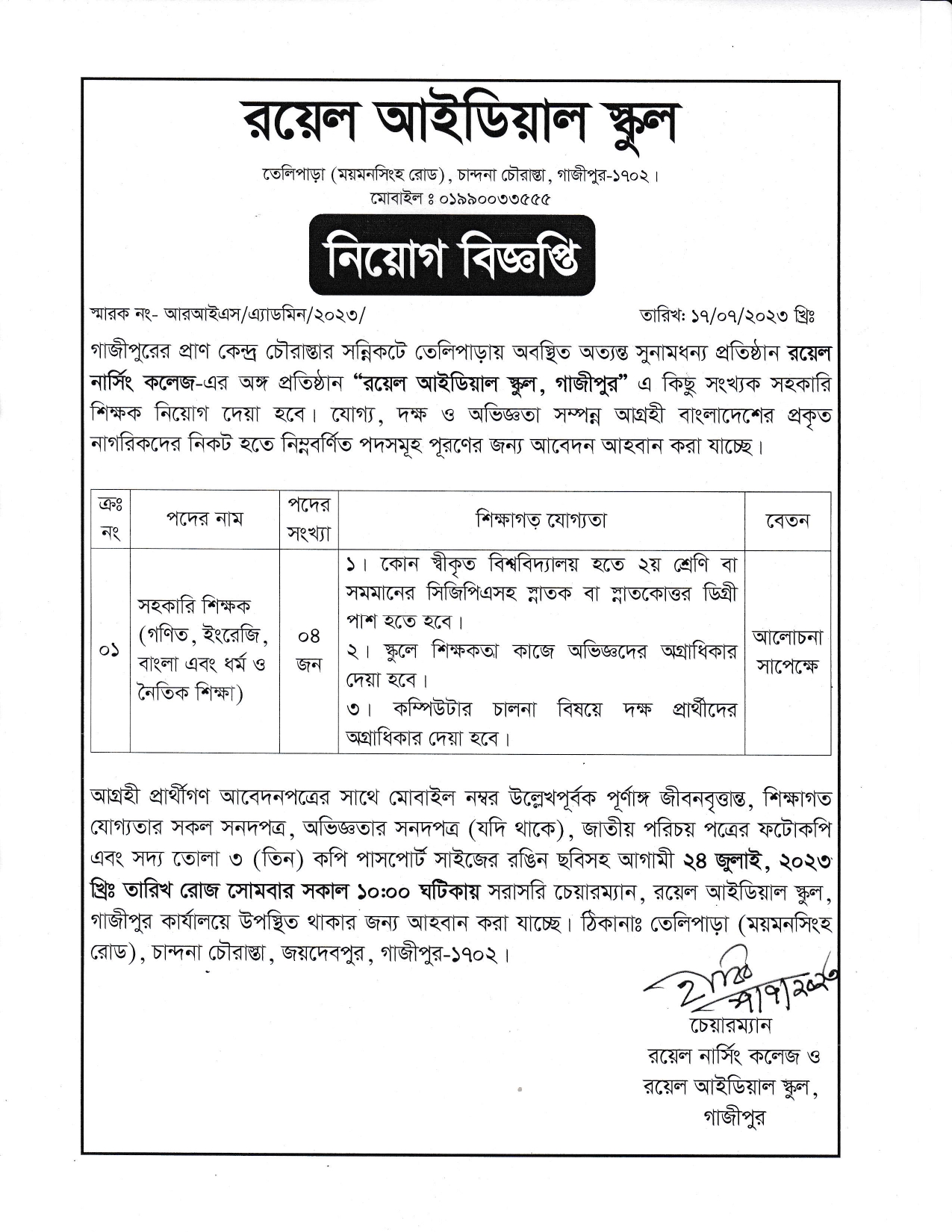 | 3 | ২০২৩ সালে রয়েল আইডিয়াল স্কুল, গাজীপুরে ভর্তি চলছে। মেধাবী ও দরিদ্র ছাত্র-ছাত্রীদের বিশেষ ছাড়ে ভর্তি চলছে.. যোগাযোগ 01990033555 |